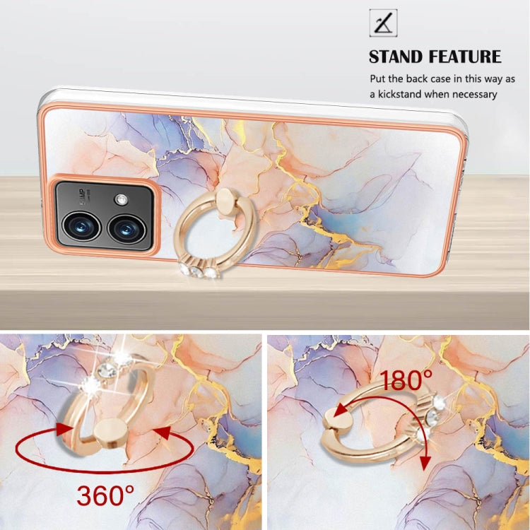 Funda para Motorola Moto G84 TPU con Galvanoplastia y Anillo (Mármol Blanco)