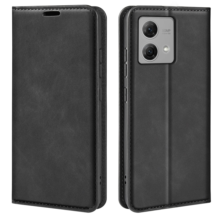 Funda de Cuero para Motorola Moto G84 con Succión Magnética de Piel Retro (Negro)