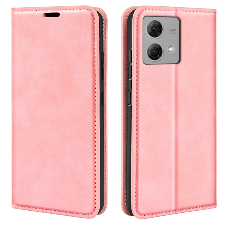 Funda de Cuero para Motorola Moto G84 con Succión Magnética de Piel Retro (Rosa)