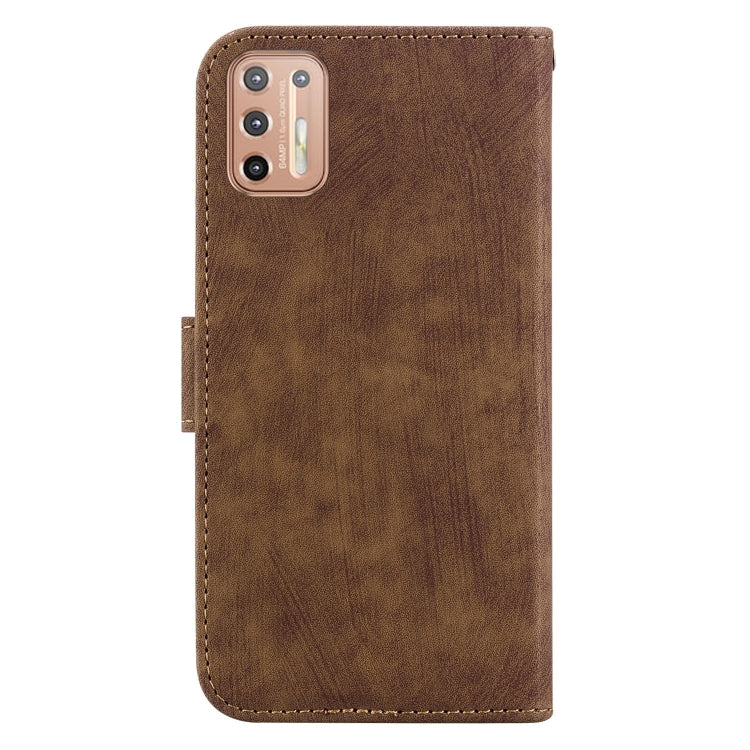Funda de Cuero para Motorola Moto G9 Plus con Relieve Little Tiger (Marrón)