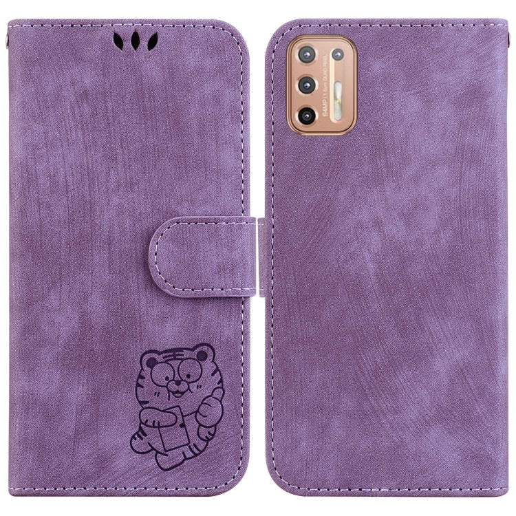 Funda de Cuero Motorola Moto G9 Plus con Relieve Little Tiger (Púrpura)