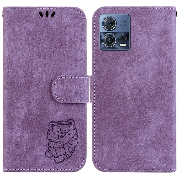 Funda para Motorola Moto S30 Pro 5G de Cuero con Relieve Little Tiger (Púrpura)