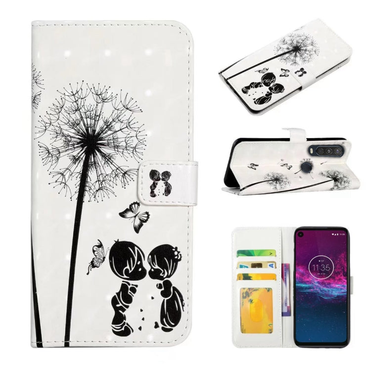 Funda para Motorola One Action de Cuero con Dibujo 3D en Relieve al Óleo (Pareja de Diente de León)