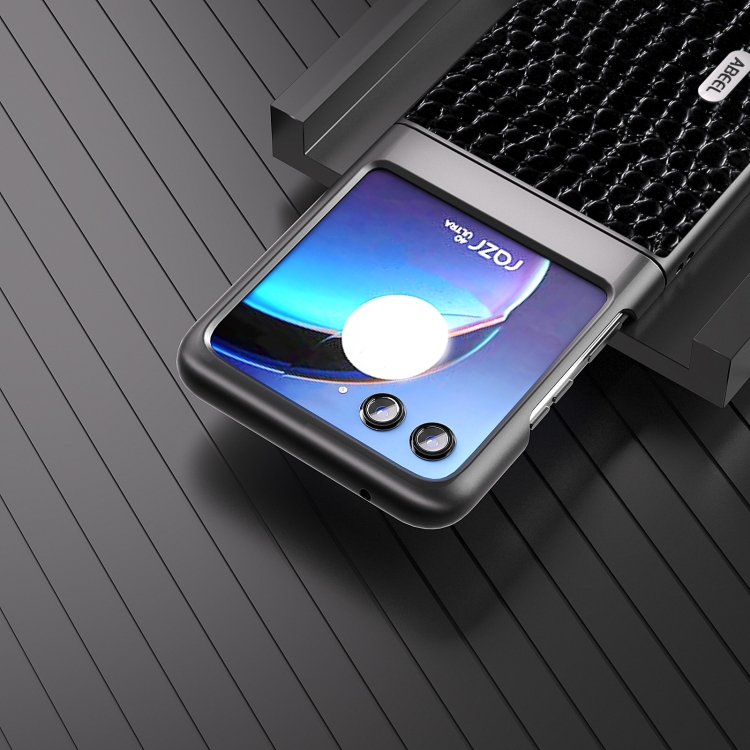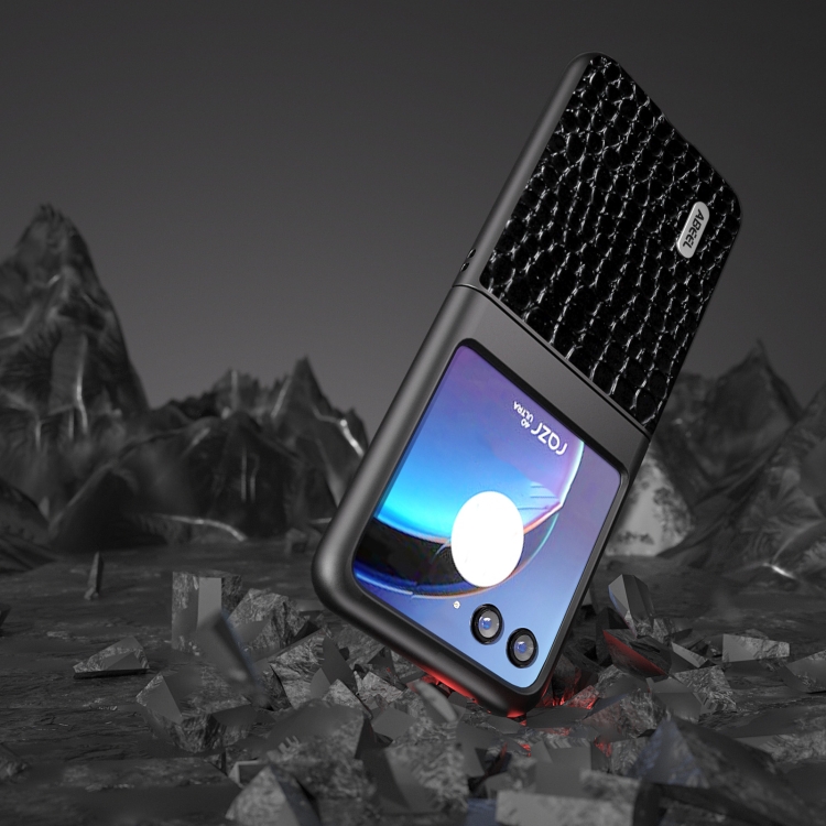 Funda para Motorola Razr 40 Ultra Abeel Cuero Genuino Patrón Cocodrilo con Borde (Negro)