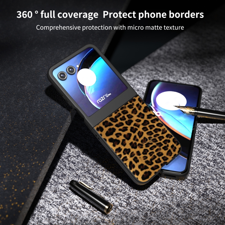 Estuche para Motorola Razr 50 Black Edge Leopard (Leopardo Dorado)