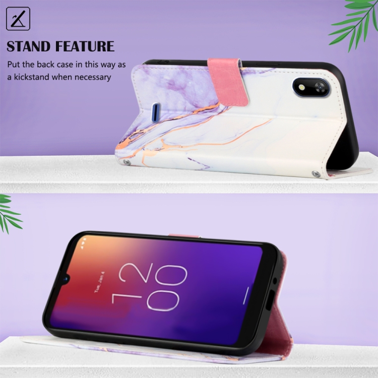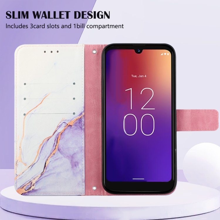 Funda de Cuero con Tapa para Moxee M2160 Pt003 Patrón Mármol (Blanco Púrpura)
