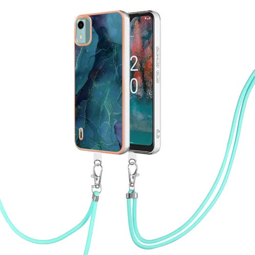 Estuche para Teléfono Nokia C12 Imd Doble Cara Mármol Galvanizado con Cordón (Verde)