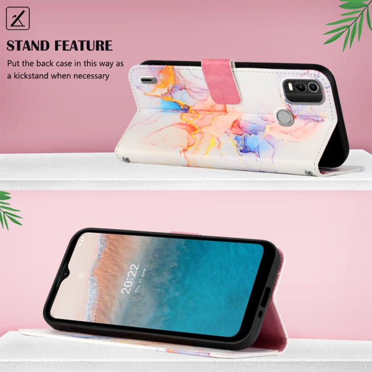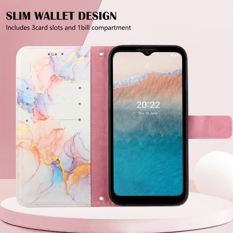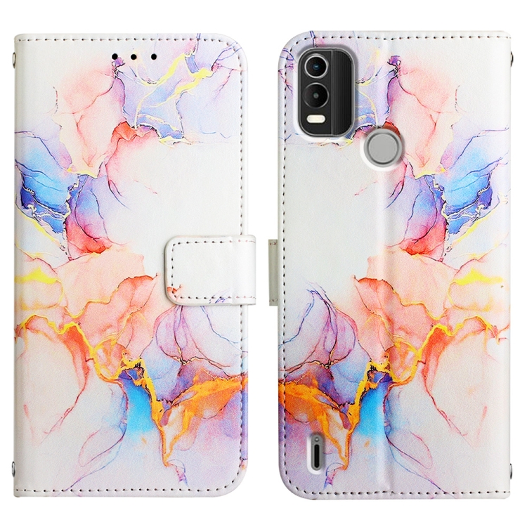 Para Nokia C21 Plus PT003 Patrón de mármol Flip Funda de cuero para teléfono (Galaxy Marble White LS004)