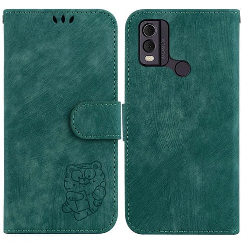Funda de Cuero en Relieve para Nokia C22 Little Tiger para Teléfono (Verde)