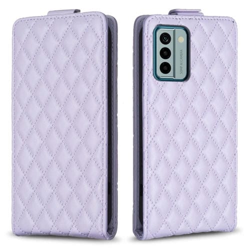 Funda de Cuero con Tapa Vertical para Nokia G22 Diamond Lattice (Púrpura)