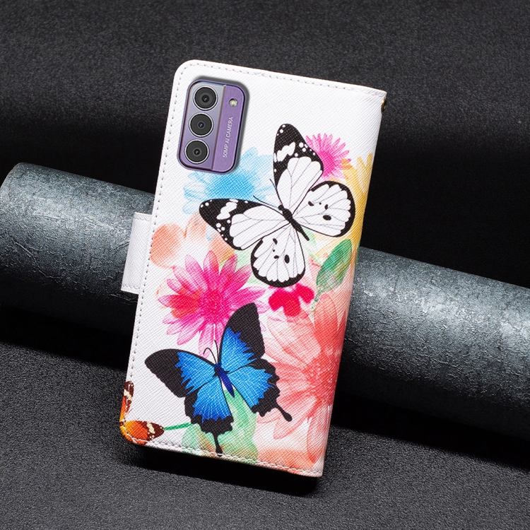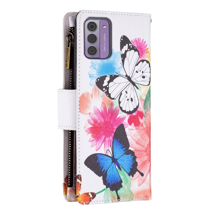 Estuche de Cuero con Cremallera para Nokia G42/G310 con Patrón de Mariposas
