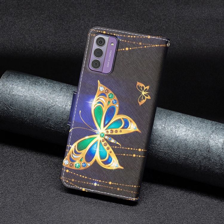 Estuche para Teléfono Nokia G42/G310 de Cuero con Dibujo Mariposa Grande a Color