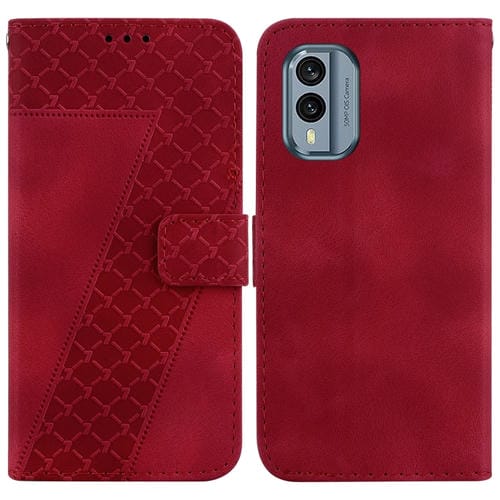 Funda de Cuero En Relieve en Forma de 7 para Nokia X30 (Rojo)