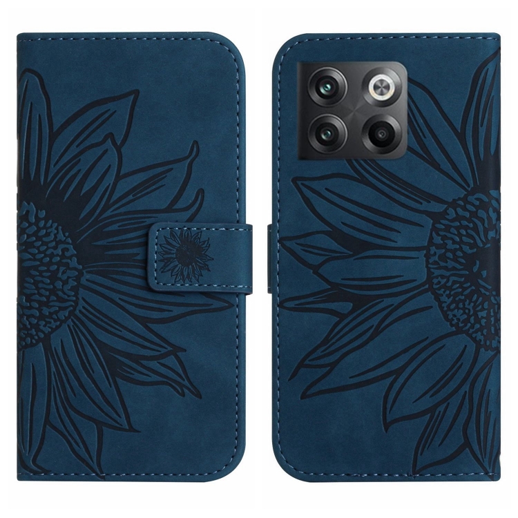 - 1x Funda de Cuero con Tapa y Cordón para OnePlus 10T Skin Feel Sun Flower (Azul Tinta)