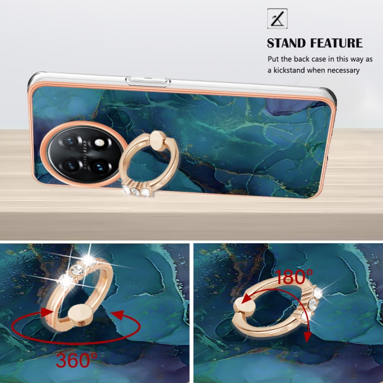 - 1x Funda para OnePlus 11 IMD Doble Cara Mármol Galvanoplastia con Anillo (Verde)