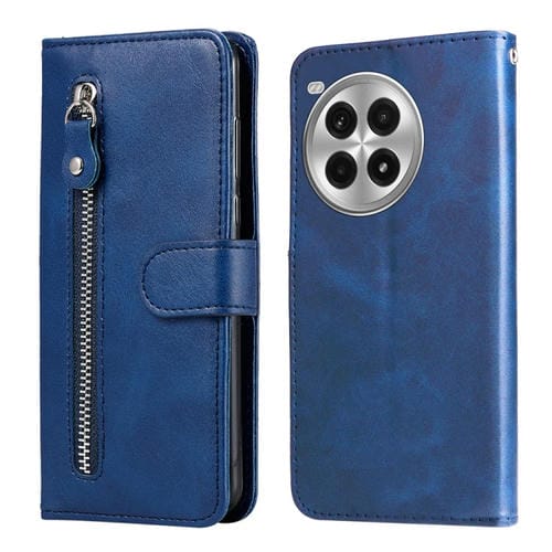 Funda de Cuero para OnePlus Ace 3 Pro con Textura Becerro y Cremallera (Azul)