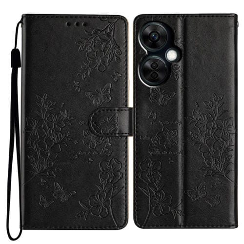 Funda para OnePlus Nord Ce 3 Lite 5G de Cuero con Relieve Flor y Mariposa (Negro)