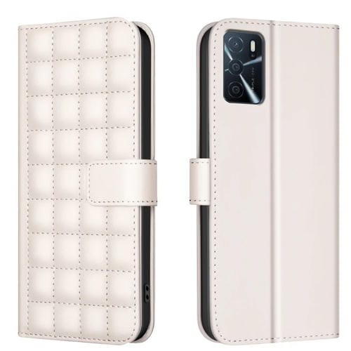 Para Oppo A16 / A16S / A54S / A55 / A54 Funda de Cuero para Teléfono con Textura Cuadrada (Beige)