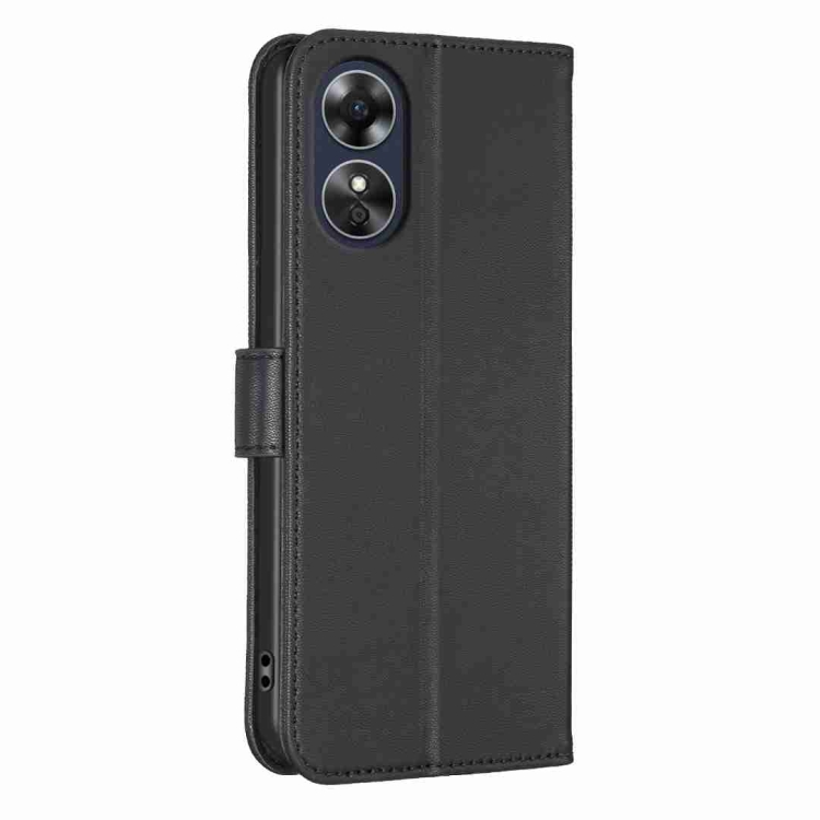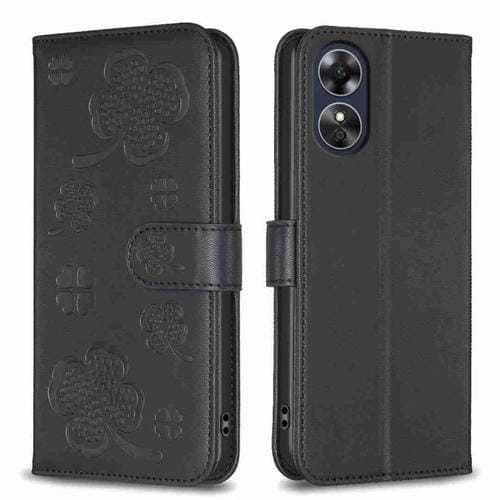 Para Oppo A17 Funda de Cuero con Relieve de Cuatro Hojas (Negro)