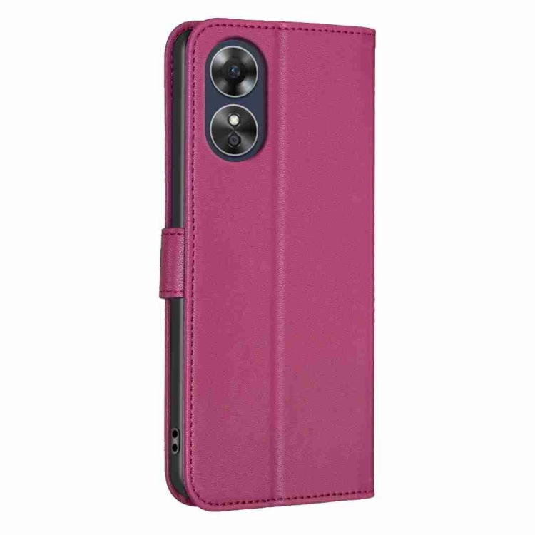 Para Oppo A17 Funda de Cuero con Relieve de Cuatro Hojas (Rojo Rosa)
