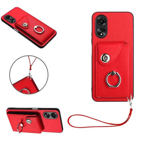 Para Oppo A17 Global Organ Card Bag Ring Holder Pu Funda para Teléfono con Cordón (Rojo)