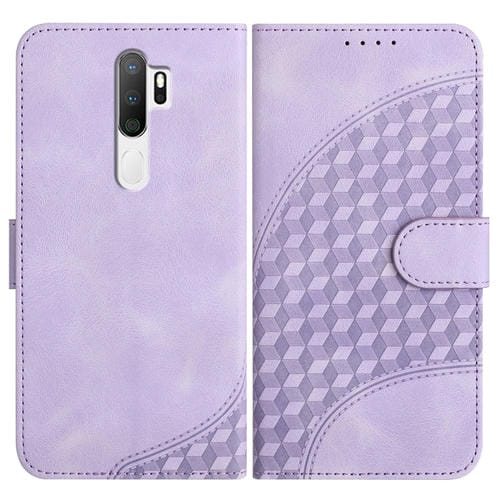 Para Oppo A5 2020 / A9 2020 Yx0060 Funda de Cuero para Teléfono con Relieve y Cabeza de Elefante con Cordón (Púrpura Claro)