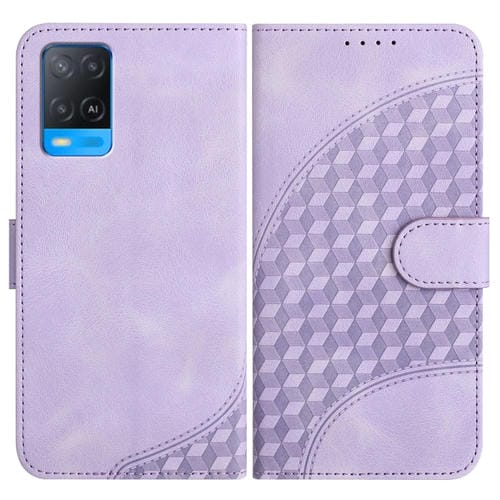 Para Oppo A54 5G / A74 5G / A93 5G Yx0060 Funda de Cuero para Teléfono con Relieve de Cabeza de Elefante y Cordón (Púrpura Claro)