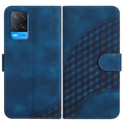 Para Oppo A54 5G / A74 5G / A93 5G Yx0060 Funda de Cuero para Teléfono con Relieve y Cabeza de Elefante con Cordón (Azul Real)
