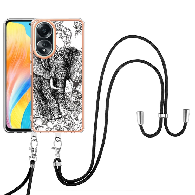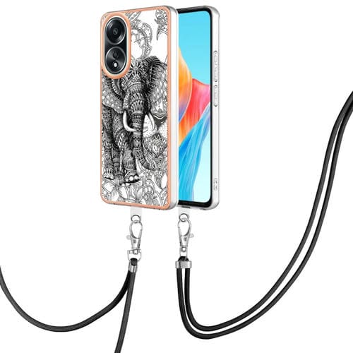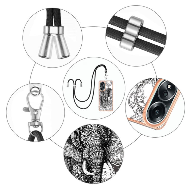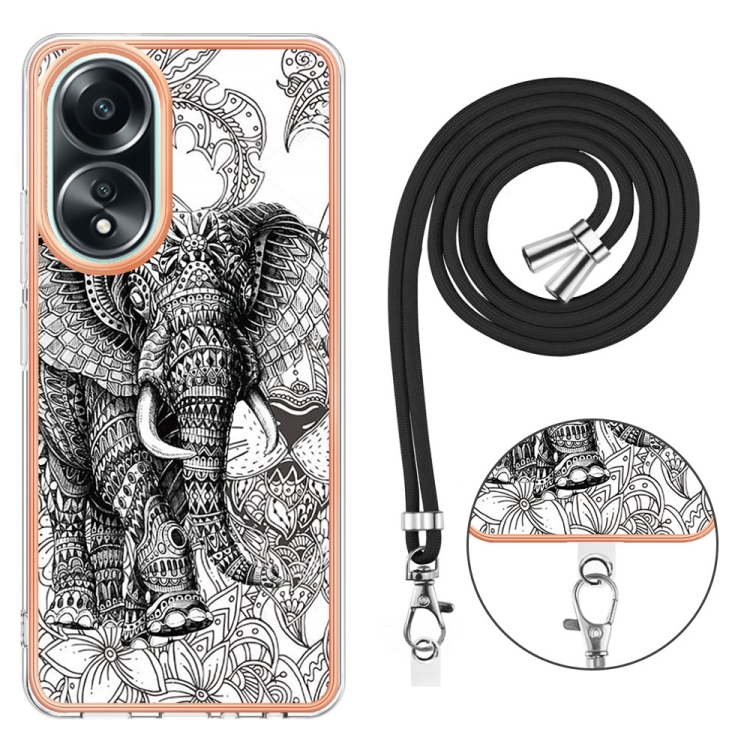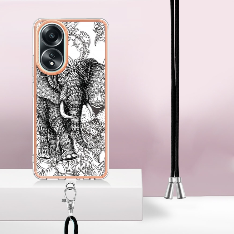 Para Oppo A58 4G Estuche para Teléfono Imd de Doble Cara con Galvanoplastia y Cordón (Totem Elephant)