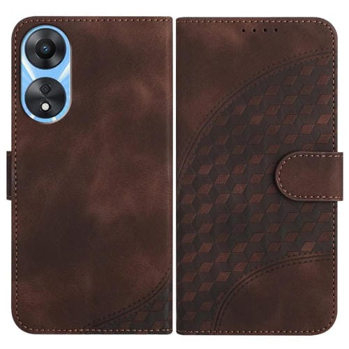 Para Oppo A58 4G Yx0060 Funda de Cuero para Teléfono con Relieve y Cabeza de Elefante con Cordón (Café)