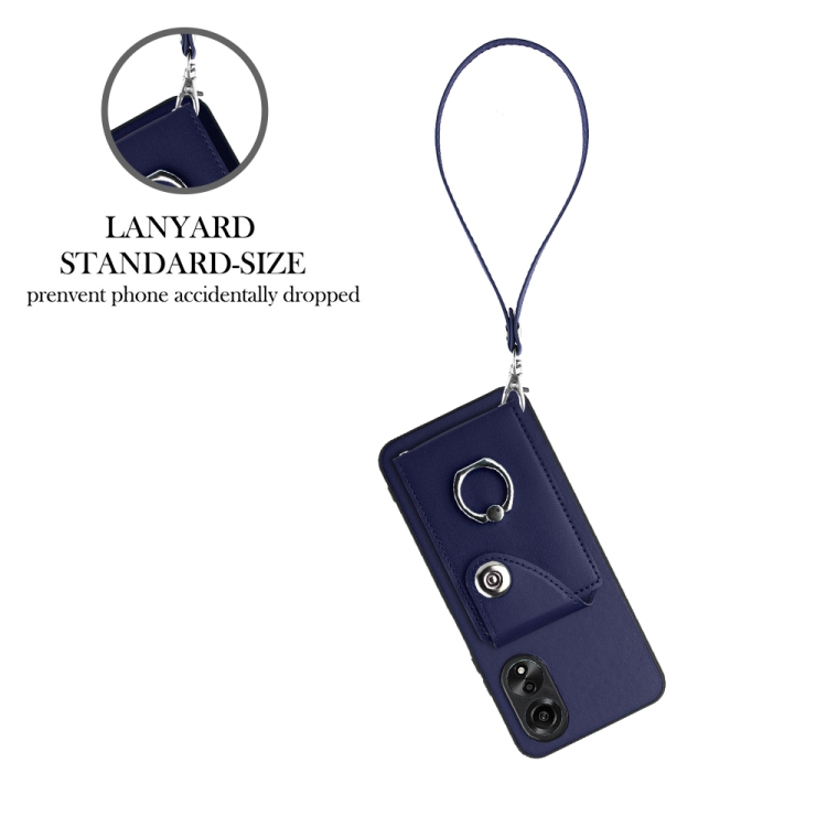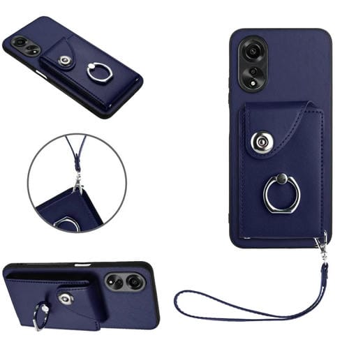 Para Oppo A58 / A58X / A78 5G / A1X / A2X Bolsa para Tarjeta de Órgano Soporte para Anillo Funda para Teléfono Pu con Cordón (Azul)