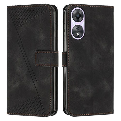 Para Oppo A58 / A78 Dream Triangle Funda de Cuero para Teléfono con Cordón Largo (Negro)