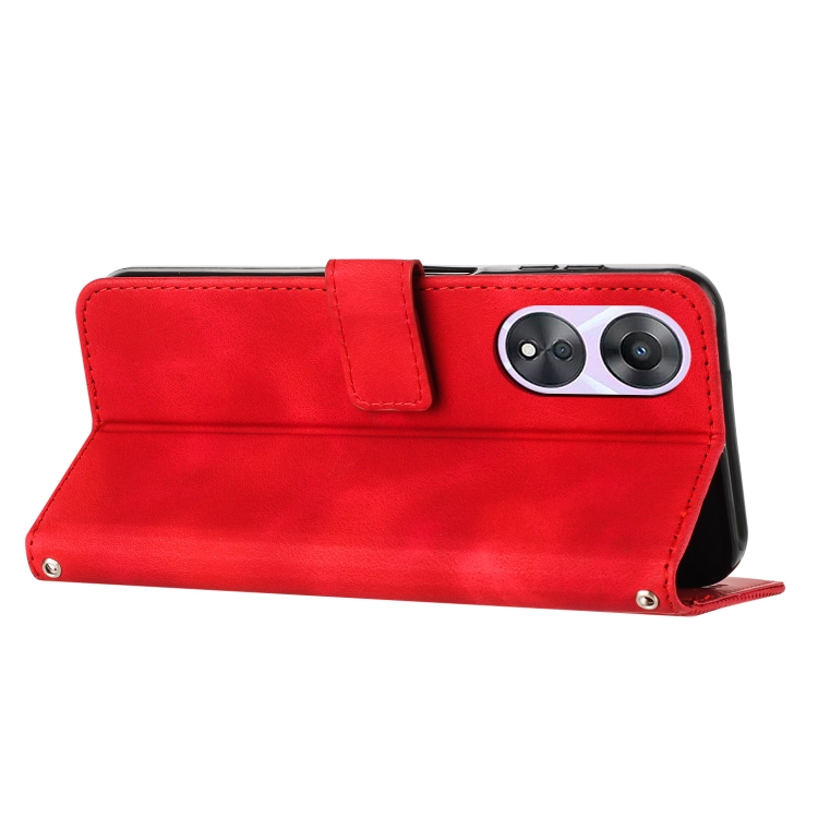 Para Oppo A58 / A78 Dream Triangle Funda de Cuero para Teléfono con Cordón Largo (Rojo)