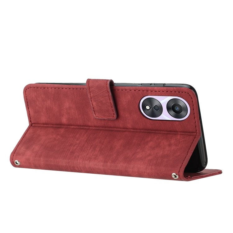 Para Oppo A58 / A78 Skin Feel Funda de Cuero para Teléfono con Patrón de Rayas y Cordón Largo (Rojo)