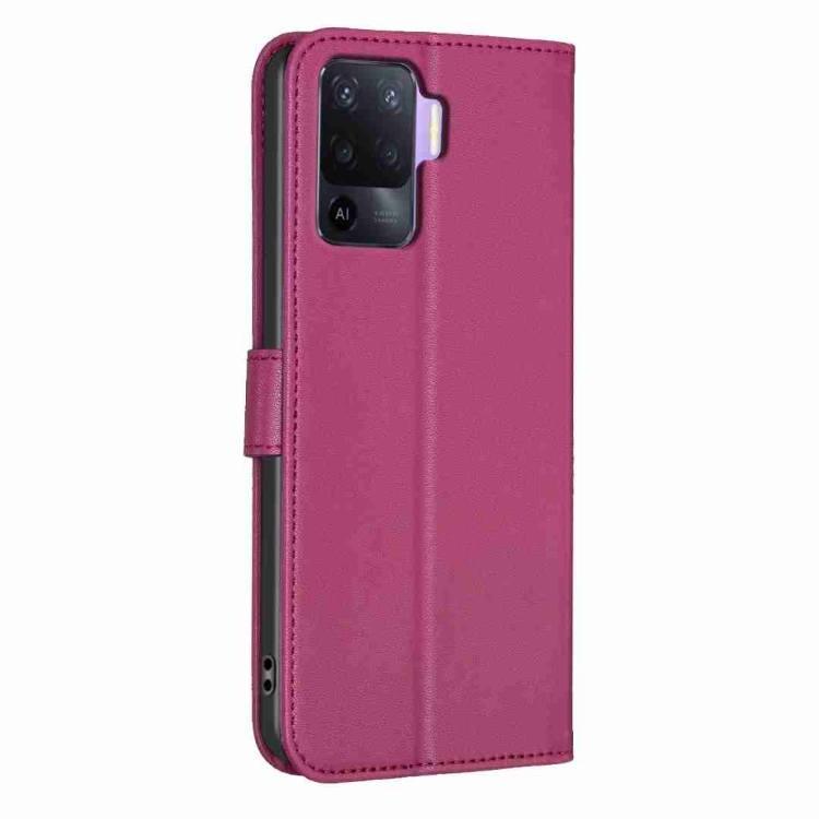 Para Oppo A76 5G / A36 4G Funda de Cuero con Relieve de Cuatro Hojas para Teléfono (Rojo Rosa)
