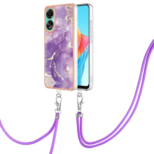 Para Oppo A78 4G Caja de Teléfono Imd de Doble Cara de Mármol Galvanizado con Cordón (Púrpura 002)