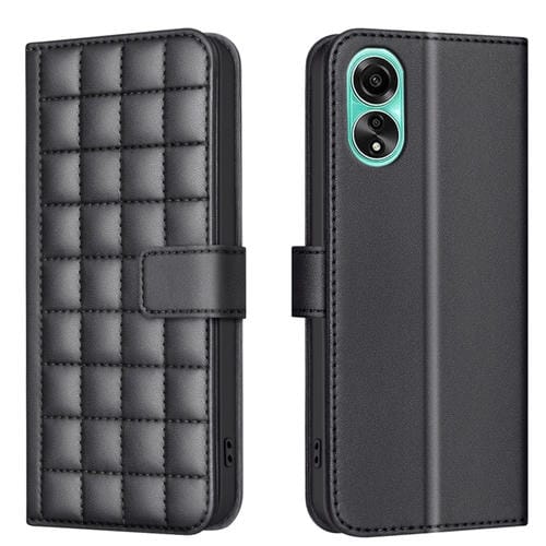 Para Oppo A78 4G Funda de Cuero con Textura Cuadrada (Negro)