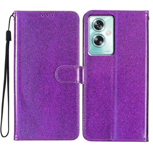 Para Oppo A79 5G / A2 5G Funda de Cuero con Tapa En Polvo con Purpurina (Púrpura)