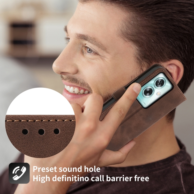 Para Oppo A79 5G Funda de Cuero para Teléfono con Billetera En Relieve y Flores con Sensación de Piel (Marrón)