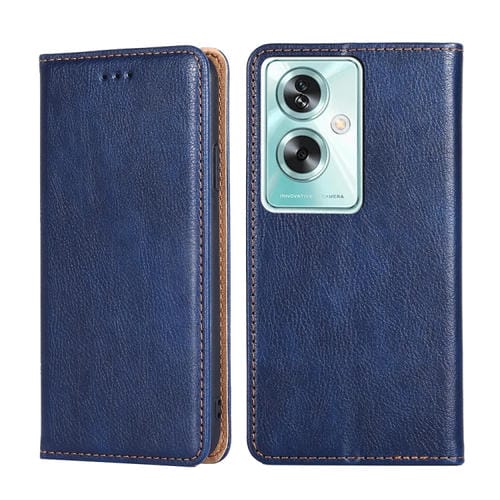 Para Oppo A79 5G Funda de Teléfono de Cuero Magnético de Color Sólido con Aceite Brillante Global (Azul)