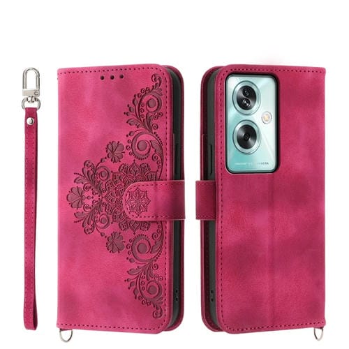 Para Oppo A79 5G Funda para Teléfono de Cuero con Billetera En Relieve y Flores con Sensación de Piel (Rojo Vino)