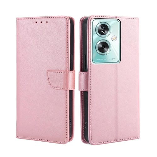 Para Oppo A79 5G Funda para Teléfono de Cuero con Tapa con Hebilla y Textura de Becerro (Oro Rosa)