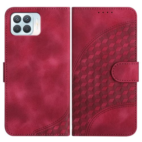 Para Oppo A93 4G / F17 Pro / Reno4 Lite / Reno4 F Yx0060 Funda de Cuero para Teléfono con Relieve y Cabeza de Elefante con Cordón (Rojo Rosa)