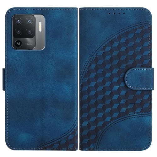 Para Oppo A94 4G/F19 Pro 4G/Reno5 F 4G/Reno5 Lite Yx0060 Funda de Cuero para Teléfono con Relieve de Cabeza de Elefante y Cordón (Azul Real)