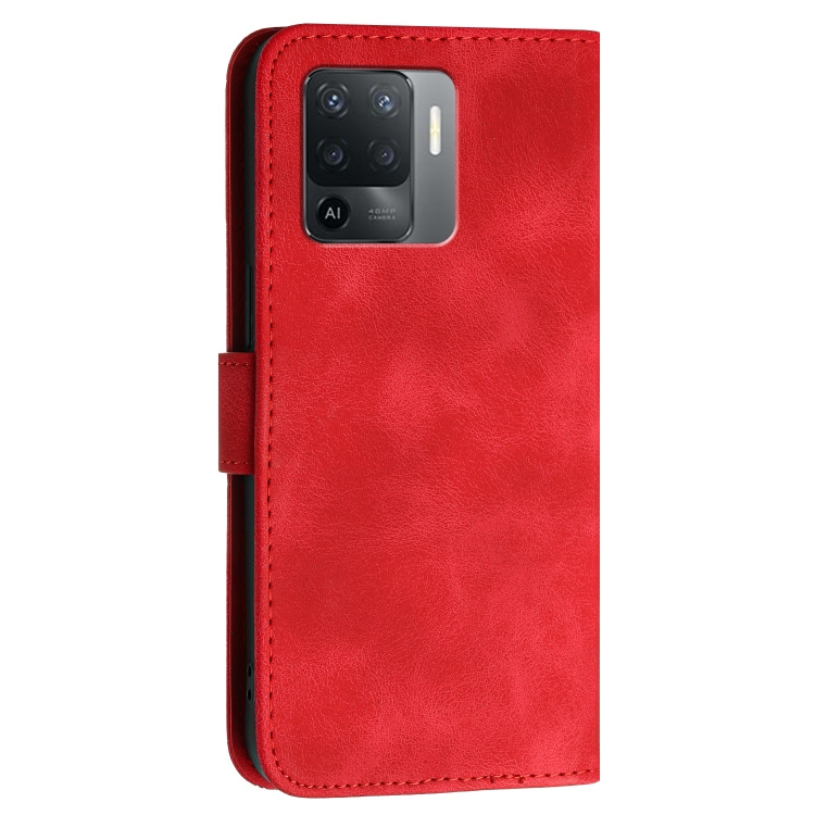 Para Oppo A94 4G / F19 Pro 4G Yx0080 Funda para Teléfono de Cuero con Tapa y Patrón En Relieve de Mariposa En Cuadrícula con Cordón (Rojo)