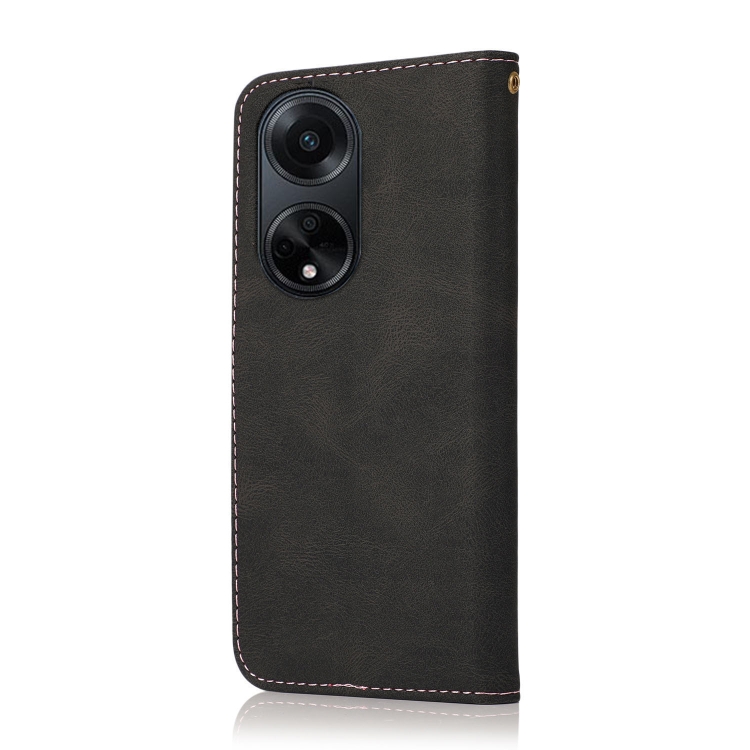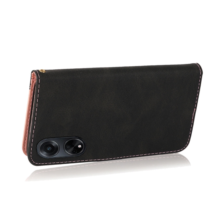 Para Oppo A98 5G Funda de Cuero con Costuras de Dos Colores (Oro Rosa Negro)