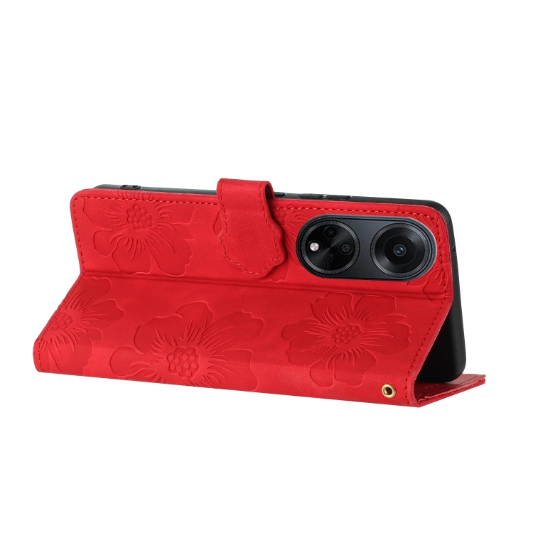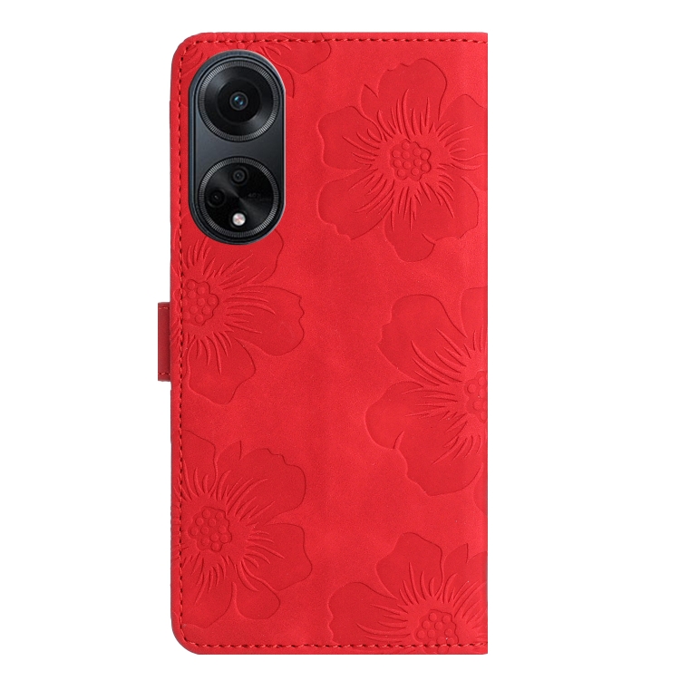 Para Oppo A98 5G Funda de Cuero para Teléfono con Estampado de Flores (Rojo)