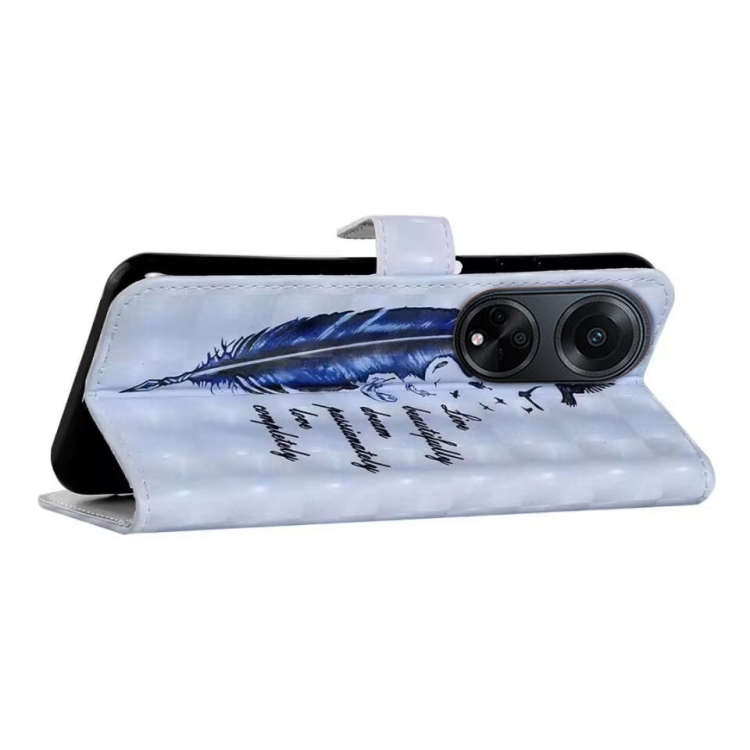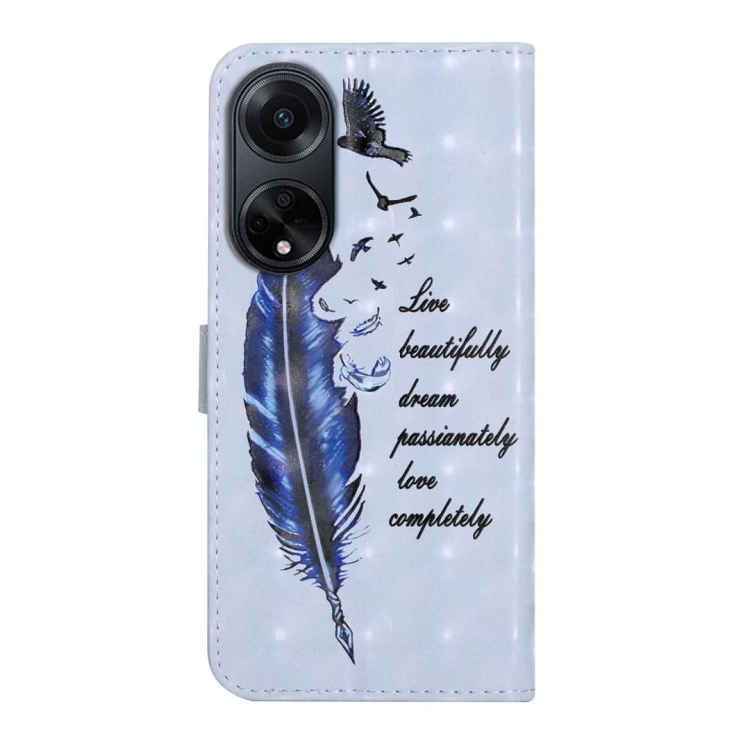 Para Oppo A98 5G Funda de Teléfono de Cuero con Dibujo 3D En Relieve al Óleo (Pluma Azul)
