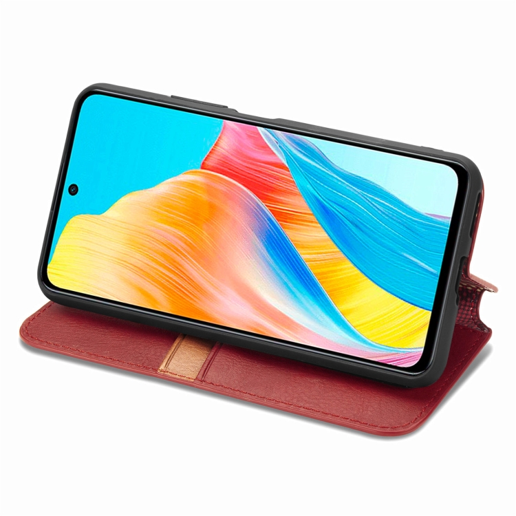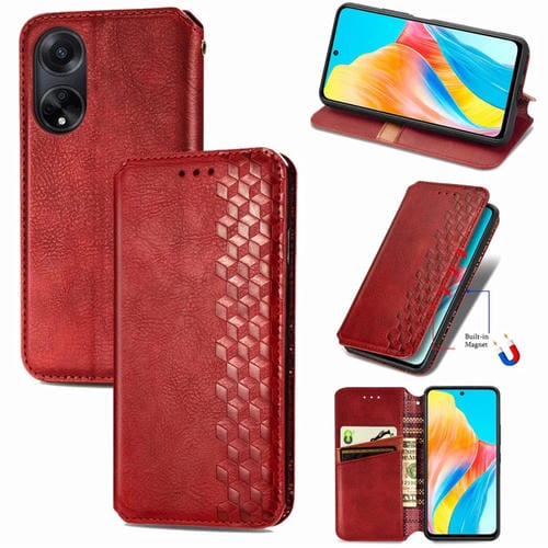 Para Oppo A98 Cubic Grid Funda de Teléfono de Cuero Magnético Prensado (Rojo)