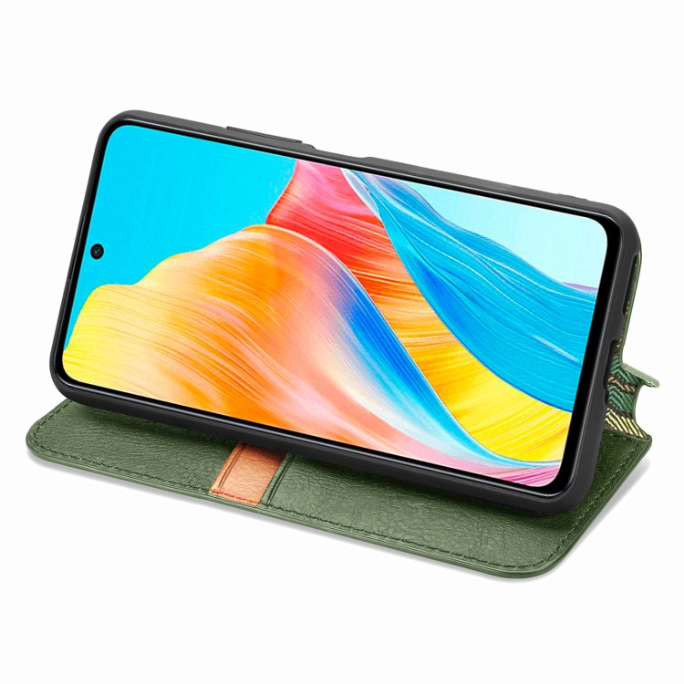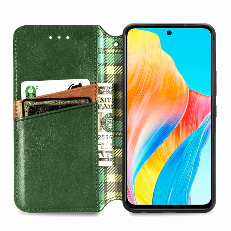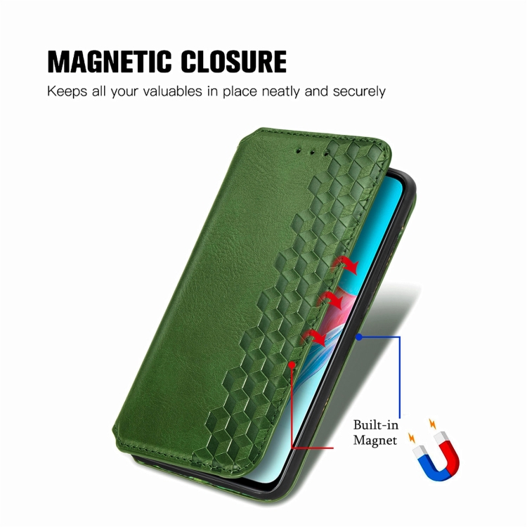 Para Oppo A98 Cubic Grid Funda de Teléfono de Cuero Magnético Prensado (Verde)